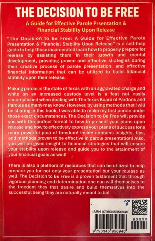 The Decision to Be Free is author’s Kwamene Nichols true testimony on the extremes and antics he employed to obtain his first parole in TDCJ. It is a composite of the detailed tips and information that he utilized to overcome the odds of one making their first parole for an aggravated offense, WHILE on a heightened security level in the State of Texas. Even after the assurances of his denial from prominent parole attorneys, he still persisted and obtained the results that he desired! For those seeking the information that this jewel offers, it is GURANTEED to make you investigate yourself fully and learn how to demonstrate it to the individuals in which you desire to express it to!