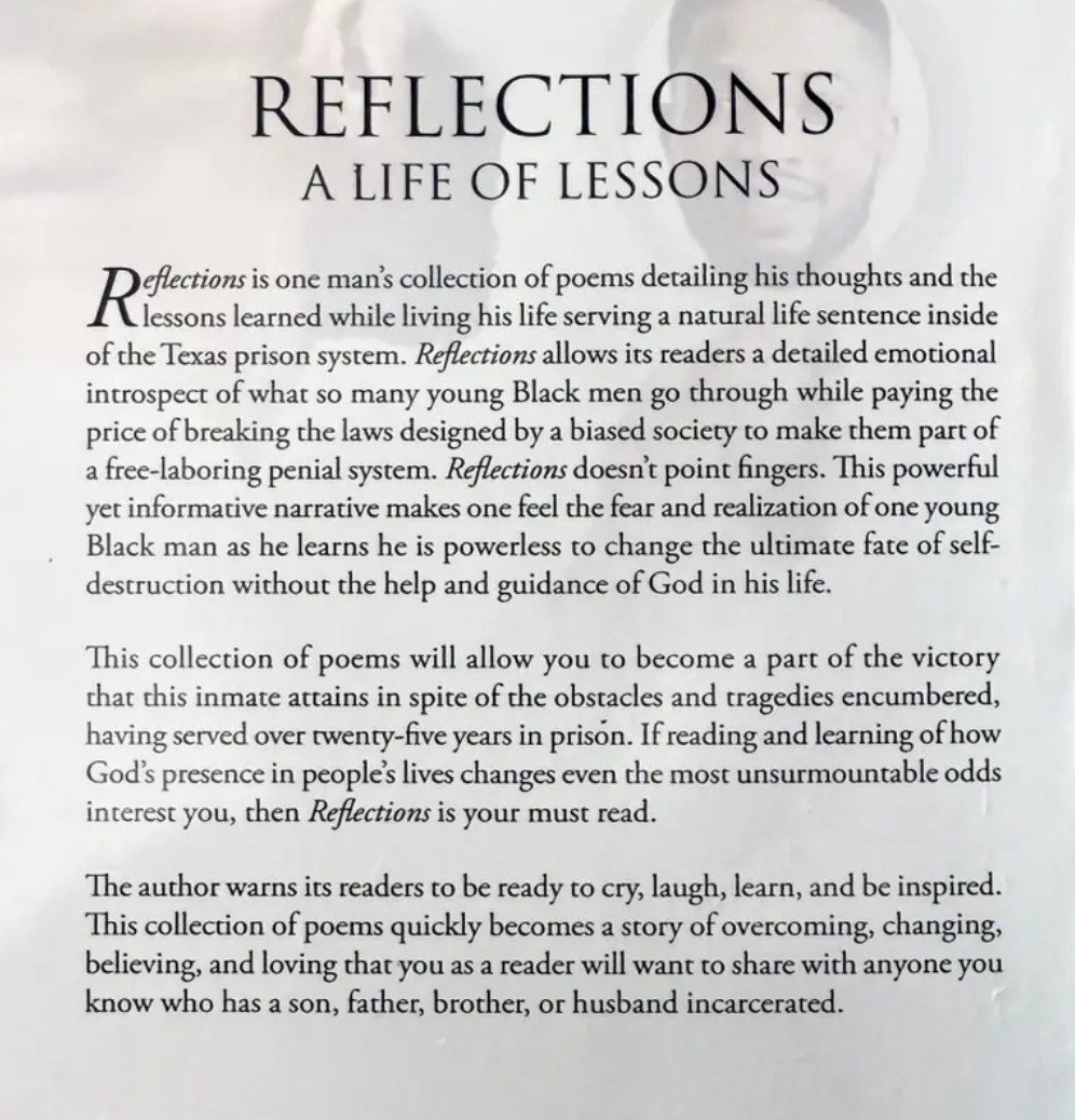 ‘Reflections’ is a wonderful inspirational that was written with the intent of the author to connect with his readers through the emotions garnered from his experiences within some of the most notorious prisons within the Texas Penal Institutions, with those that we experience the most frequent in our lives. This eloquent construction is one of the most effective examples of how roses can grow from concrete, and why we are committed here at ‘A Path to Ascension Publications’ to discovering these hidden gems from within the Texas Prison system. Mr. McCloud is an inspiration to our team being that his works is one of our first, but it is one he published on his own, before our program was available, using nothing but his will and creativity! Be sure to support Keith’s work, which is available at Amazon, and will soon be available as an eBook directly from our site. Thank you again for your support.